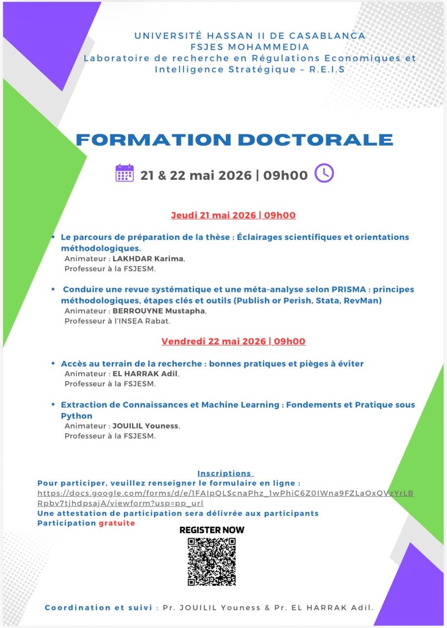 • Doctoriales édition 2026 sous le thème : « Méthodologie de Recherche en Sciences Economiques et Gestion et Sciences Juridiques et politiques «
