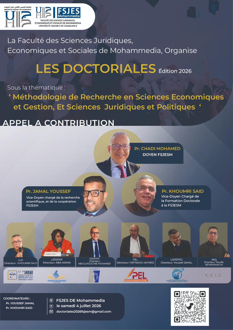 • Doctoriales édition 2026 sous le thème : « Méthodologie de Recherche en Sciences Economiques et Gestion et Sciences Juridiques et politiques «